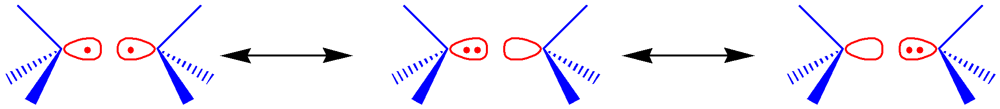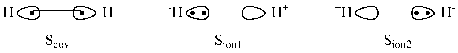 in the first structure indicates that two electrons occupy orbitals 9 and 10 respectively and form a bond, which is the covalent structure. The last two structures correspond to the ionic structures.