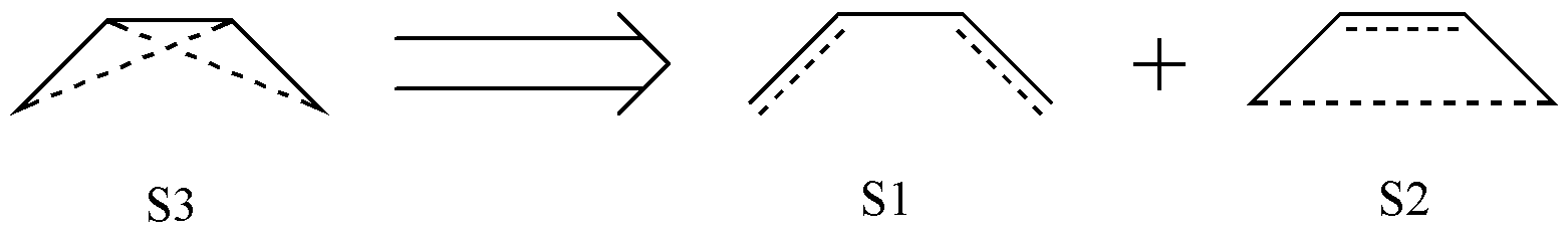 However, if you attempt to perform calculations using these 3 valence bond structures, you will find that the calculation fails! This is because these 3 structures are not linearly independent. In fact, it can be shown that S3 can be expressed as a linear combination of S1 and S2: