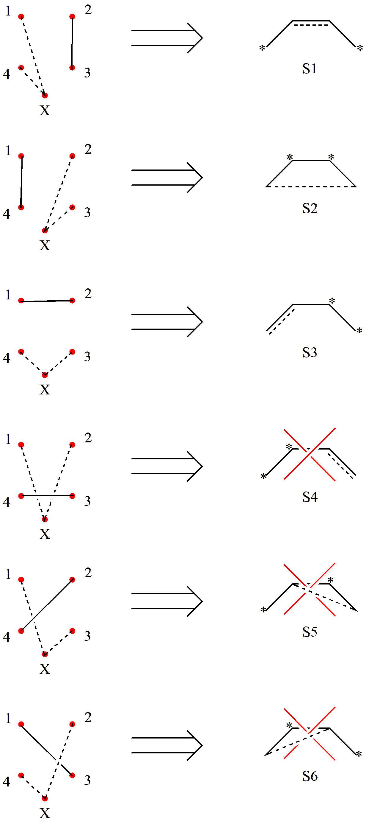 Since S3 involves crossing lines, it must be eliminated. Thus, we obtain 2 covalent structures.