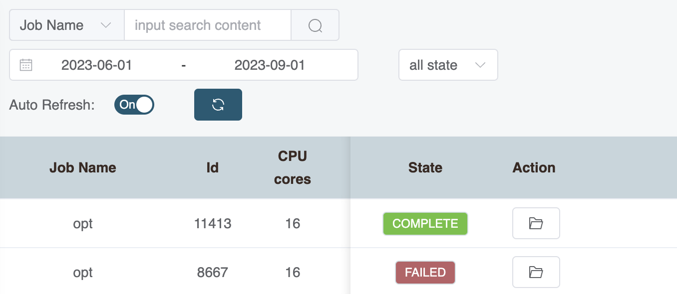 You can now easily navigate through the computing jobs, e.g., you can see and manage their status and directly jump to the directory with the input and output files.