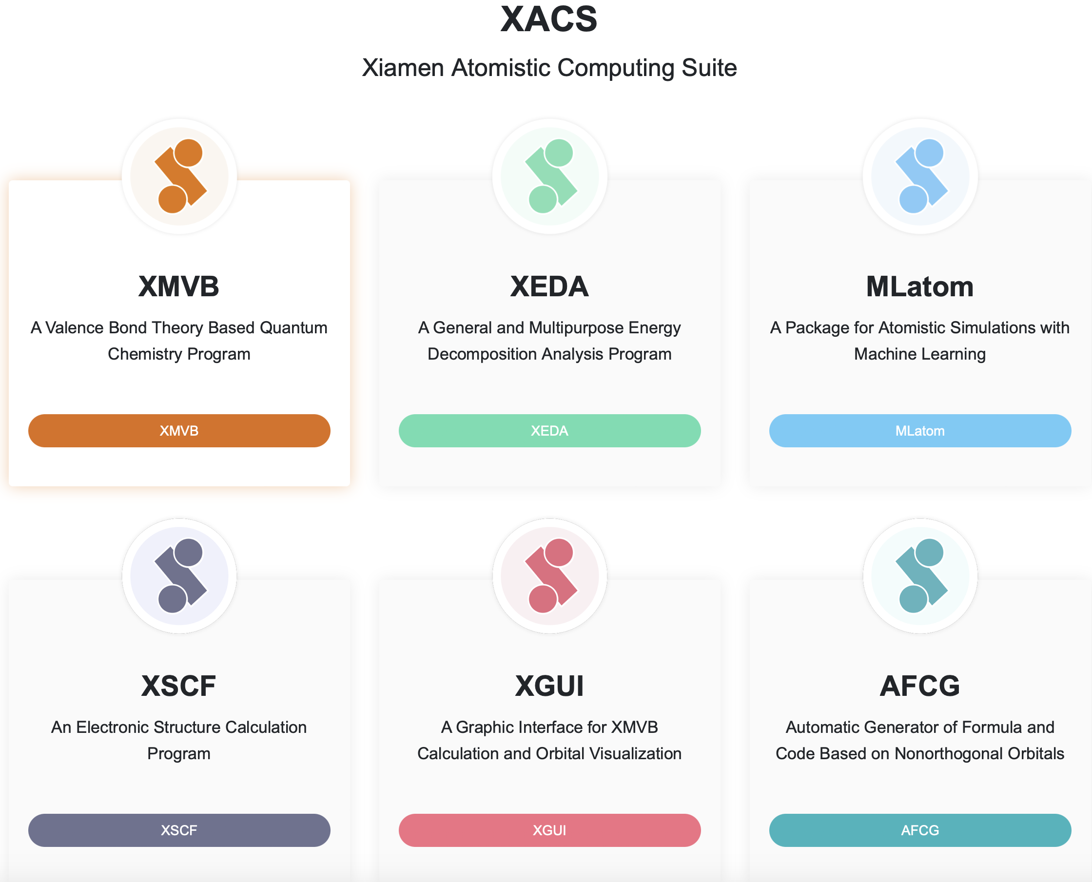 XACS provides a rife platform for growth of its packages. We are not going to roundup here all of them, but mention some exciting developments in writing our own SCF program (XSCF by Yueyang Zhang) and that we have roundups for some of the packages elsewhere (i.e., for MLatom).